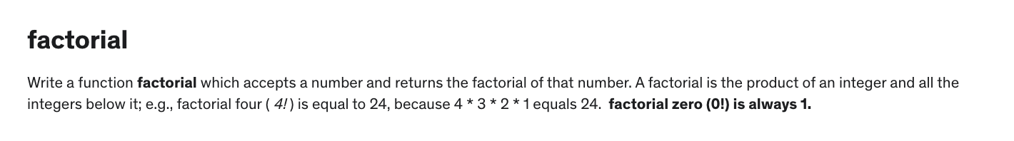 //factorial(1) // 1