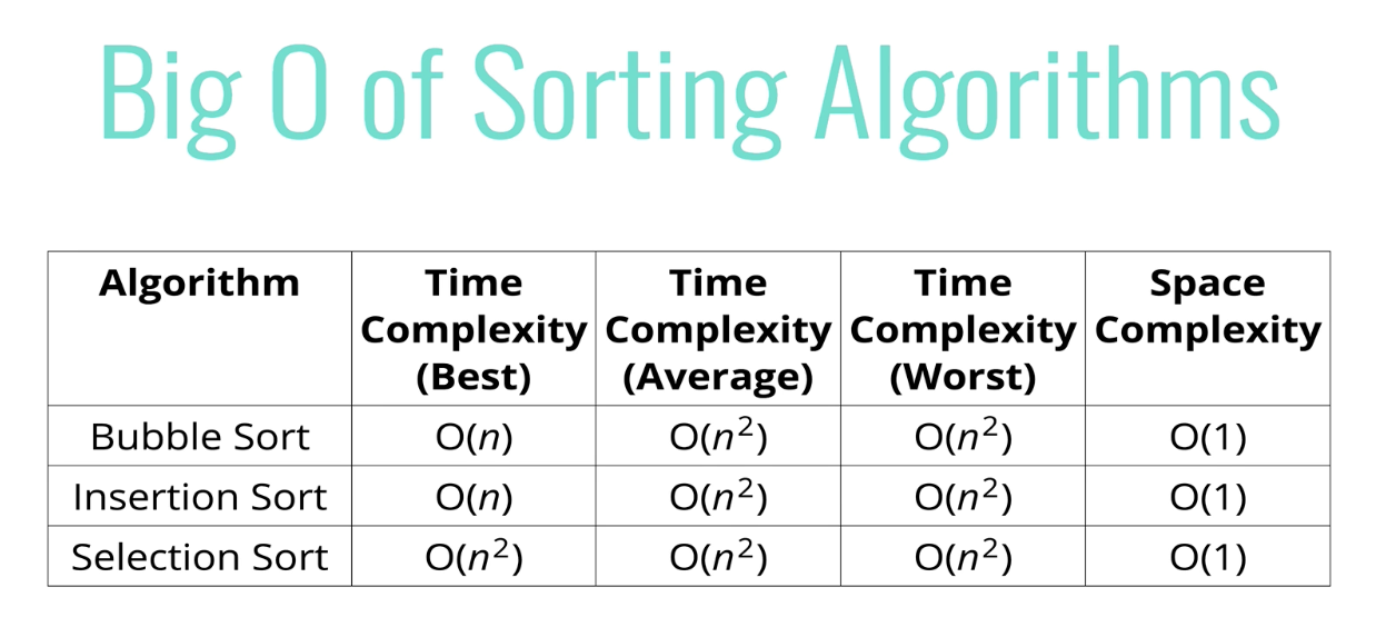 (Selection Sort는 언제나 Big O(n^2)라서 효율이 좋지 않다. 대신 구현은 쉽다.)