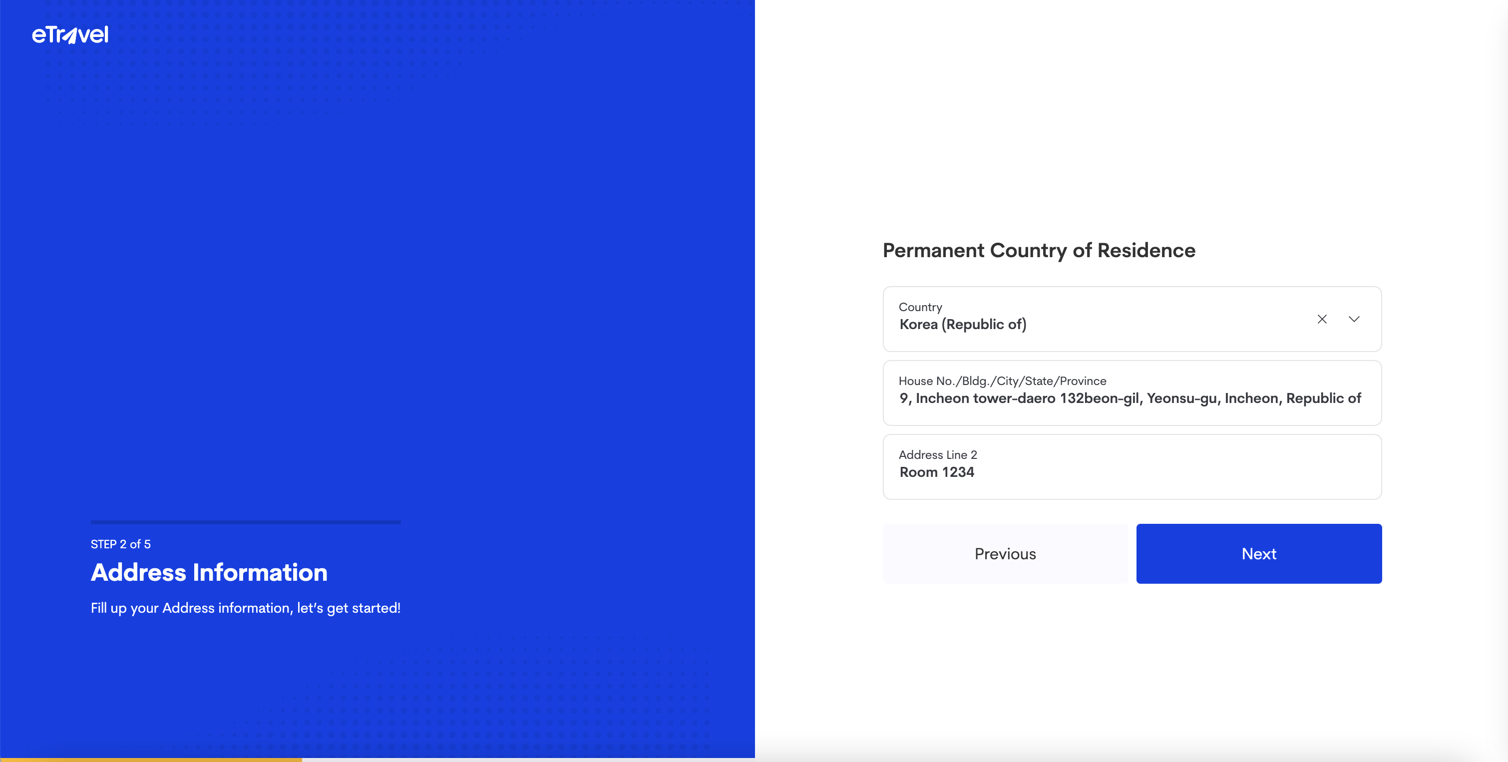 Address Line 2 : 동, 호수, 층 등 (1234호 에 산다면 Room 1234)