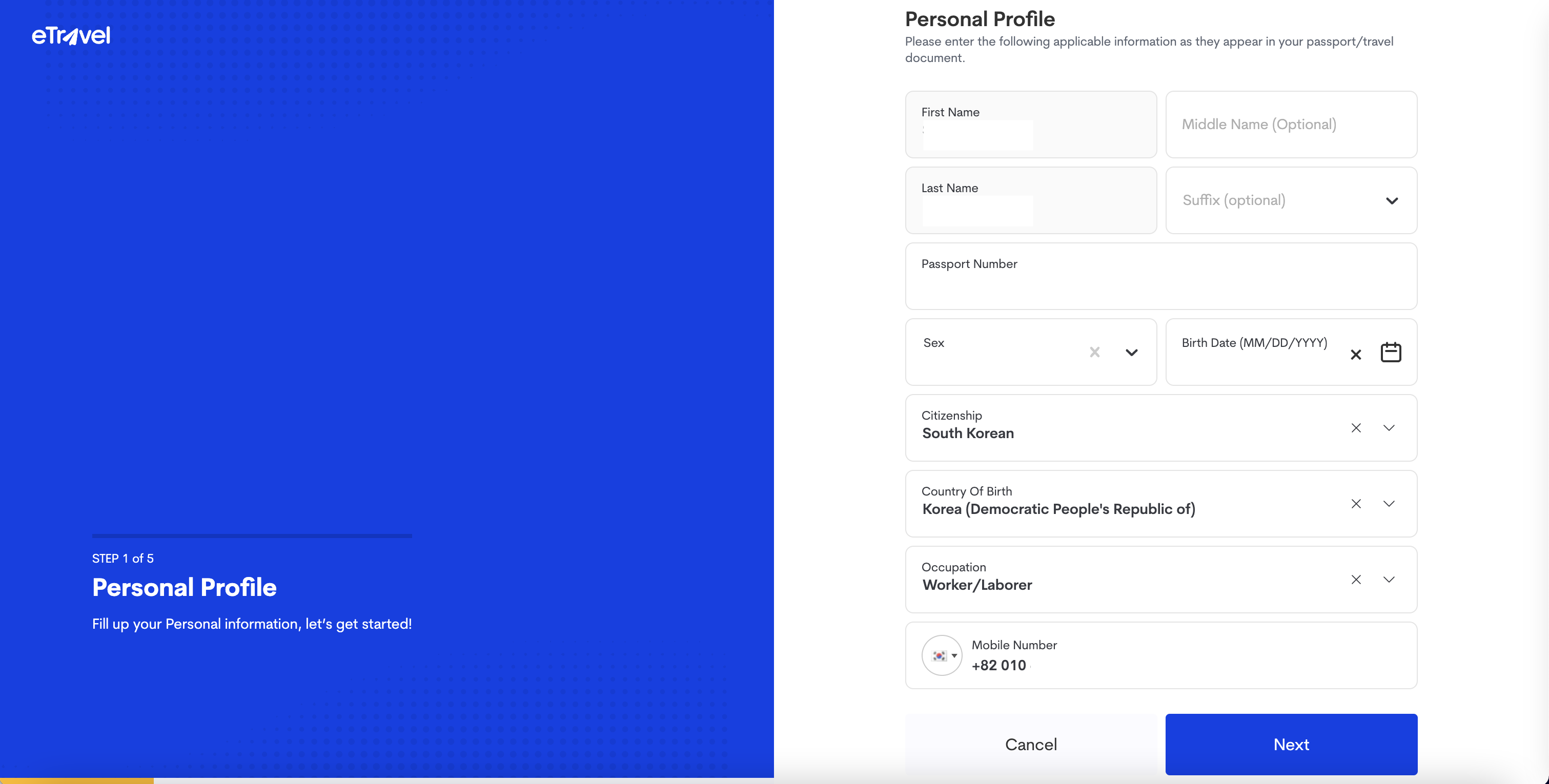 Mobile Number : 연락처 (+82 010 9876 5432)