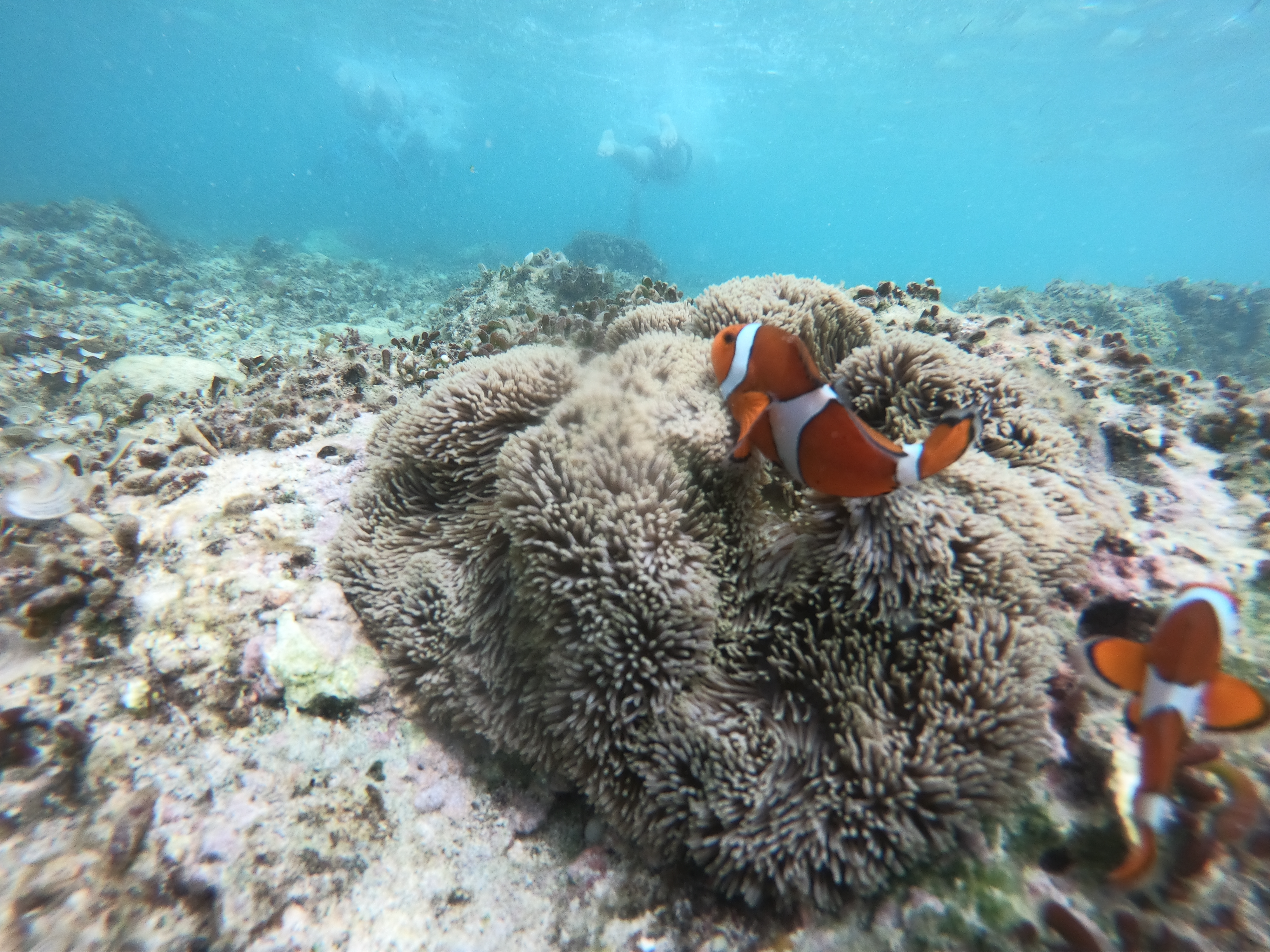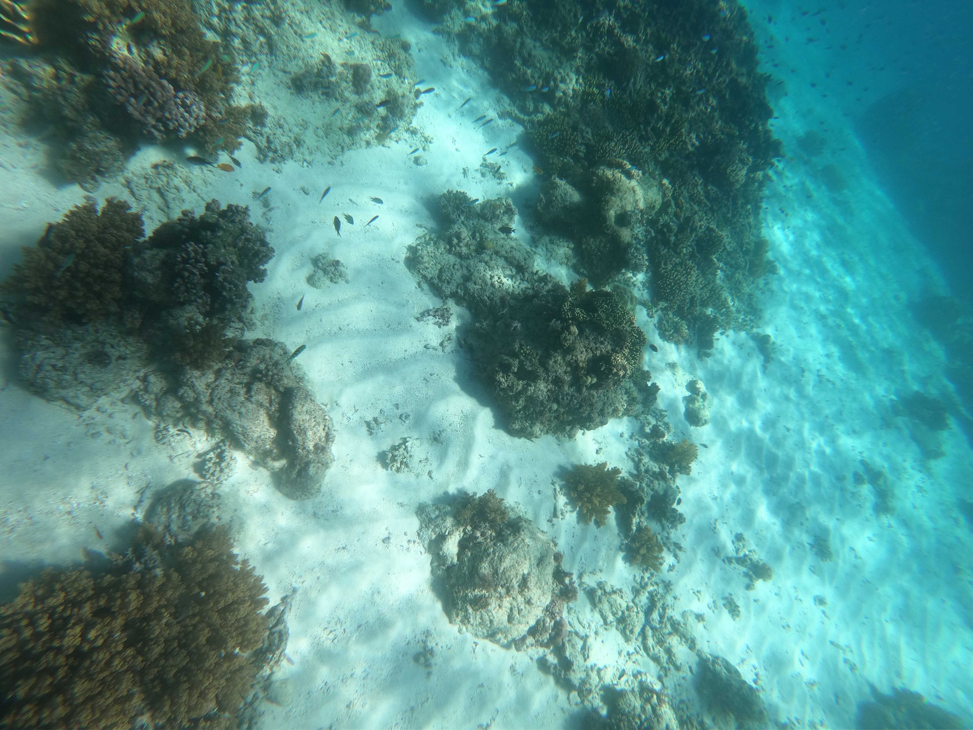 대략 1시간정도 시간을 가지고 산호초 스노쿨링을 진행했어요. 거북이 스노쿨링은 배에서 바다로 바로 들어가는 반면에 산호초 스노쿨링은 육지에서 바다로 들어갔어요. 저처럼 깊은 물을 어려워하시는 분들은 이런 얕은 곳에서 스노쿨링 쓰는 법을 먼저 연습한 다음에 천천히 수심을 늘려보는 것도 좋을 것 같아요! 저는 일단 물에 대한 공포증부터 줄이고 나서 도전해보는걸로... 🥲