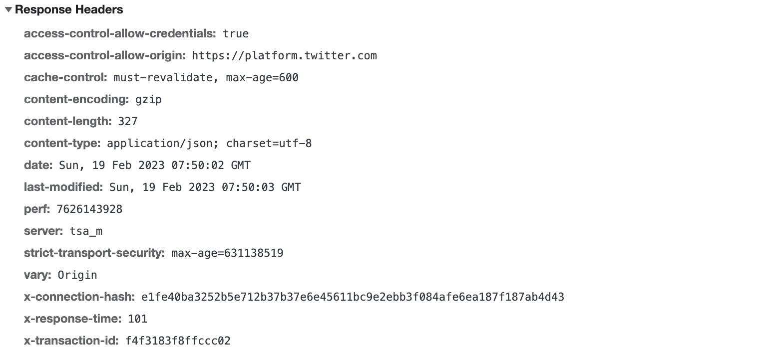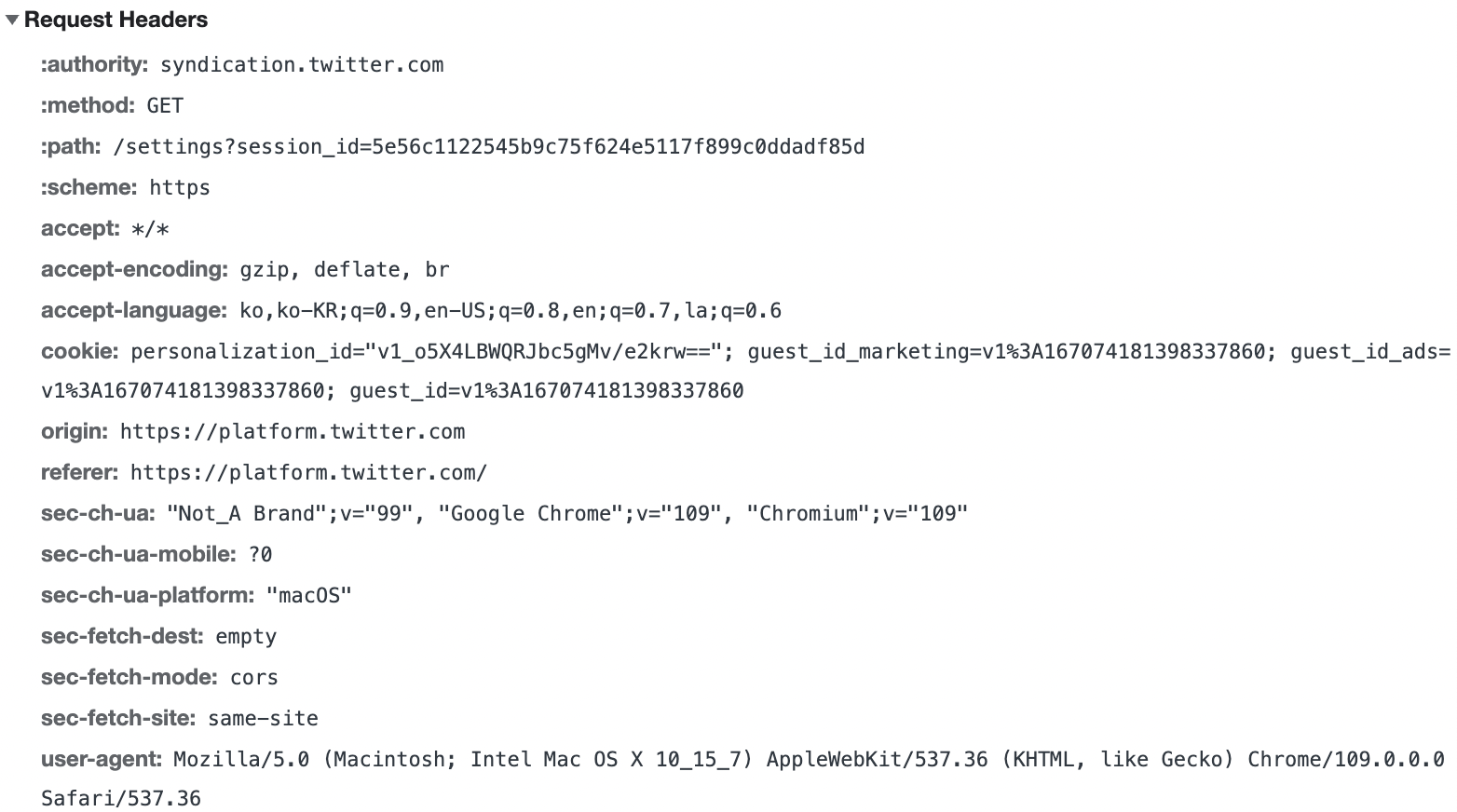 Response Headers에서 access-control-allow-origin: https://platform.twitter.com