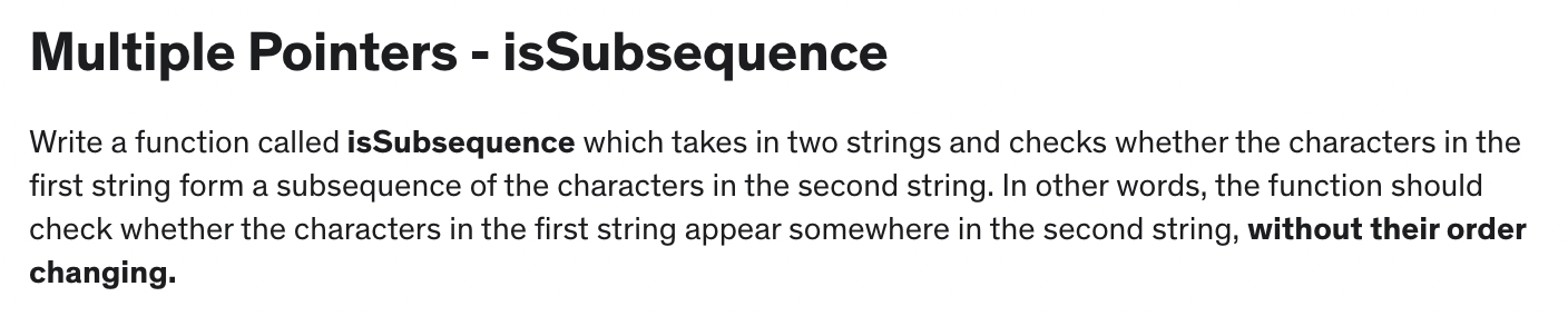 if(str2[0] === str1[0]) return isSubsequence(str1.slice(1), str2.slice(1))